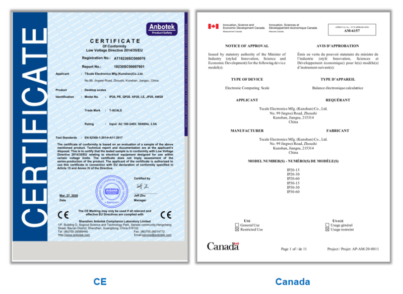 - Certificate: NTEP, OIML, CE, Canada
