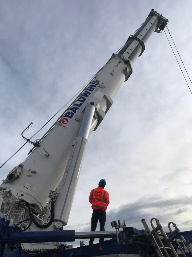 In the latest case study, JGSIS used the Bluetooth Radiolink plus to inspect a 1,000t capacity Demag AC 1000-9/2 all-terrain telescopic crane for Baldwins Crane Hire. The nine-axle crane boasts an integrated electronic load moment indicator (LMI); a colour display showing current operating conditions, load charts, and a fault indicator; signal lights indicating the load; and a crane data logger.